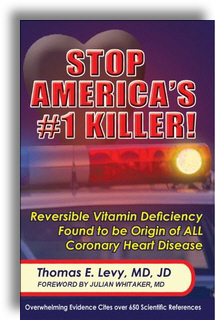 ". . . I have trouble understanding why somebody interested in heart disease didn't think of it 20 or 30 years ago when it was accepted by cardiologists that the primary cause of atherosclerosis and heart disease is a lesion in the wall of an artery in a region of stress. So I asked myself two or three years ago, 'Why should there be a lesion in the wall of the artery?' Animals don't have these lesions in regions of stress. Well, you have the lesions because arteries are weak. Why are they weak? Ordinarily, animals' arteries are strengthened by the deposit of collagen. And you can't make collagen without using up vitamin C. Humans don't get enough vitamin C, so their arteries are weak. And then a lesion forms, followed by the other stages of developing heart disease. THEREFORE, DEFICIENT INTAKE OF VITAMIN C IS A PRIMARY CAUSE OF CARDIOVASCULAR DISEASE."